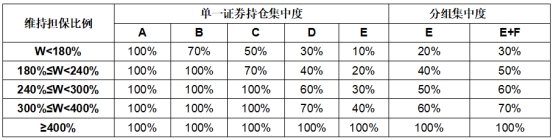 当投资者信用账户无负债时,不受单一证券、分组持仓集中度限制。基金按B类控制、债券全部按C类控制。